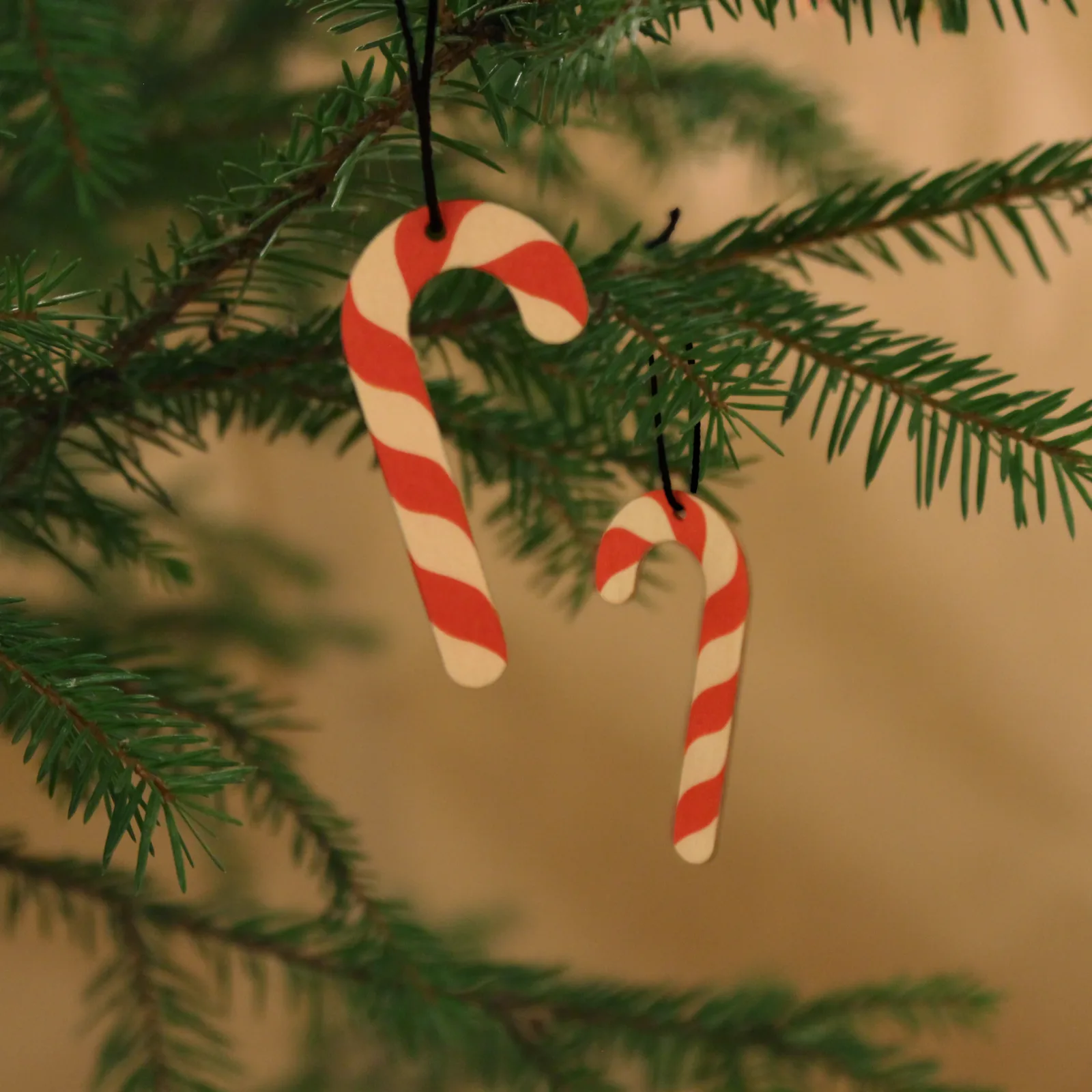 Karkkikeppi -kuusenkoriste on makea lisä joulukuuseen. Valmistettu kotimaisesta koivuvanerista verstaallamme Keski-Suomessa. Punaiset raidat ovat painettu kuusenkoristeen molemmille puolille. Koko: 6cm x 3cm.